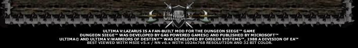 Welcome to the Official Ultima V: Lazarus website. Within these walls ye shall find many stories of our great land, Britannia, and how after the fall of the Triad of Evil, she came to know a prosperous time filled with enlightenment and the flourishing of the eight sacred Virtues.